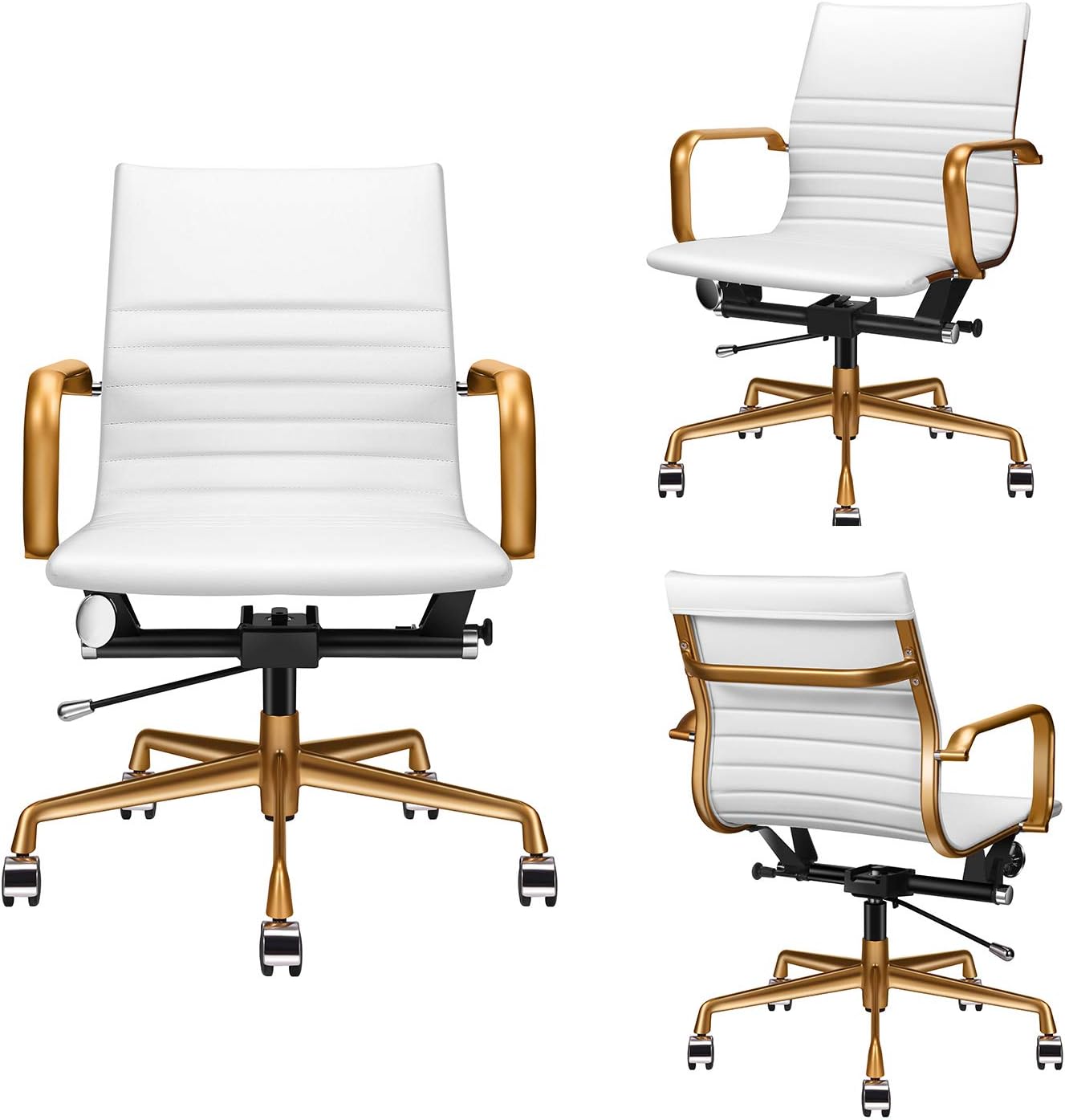 Luxmod mid back white office chair with armrest, adjustable swivel chair in durable vegan leather, ergonomic desk chair for.